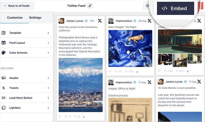 Once you’re happy with the design, you can embed your feed directly from the editor.