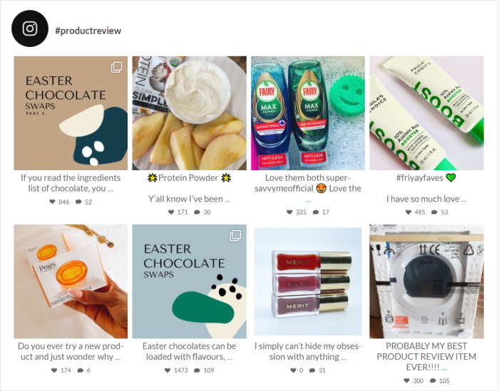 - Da Instagram eine Plattform für visuelle Inhalte ist, können Bewertungen ansprechende Fotos und Videos Ihrer Produkte posten, um die Aufmerksamkeit der Menschen zu erregen.