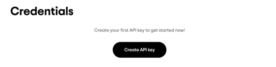 2) Navigieren Sie zum Abschnitt Credentials und klicken Sie auf die Schaltfläche "Create API key".