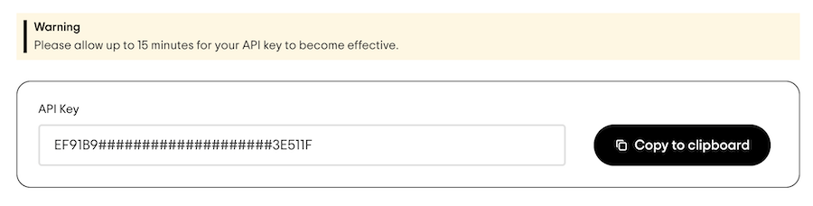 4) Sobald Ihr API-Schlüssel aktiv ist, können Sie ihn kopieren und für das Bewertungs-Plugin verwenden.