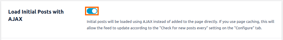 Das Instagram-Feed-Plugin enthält auch eine Einstellung, mit der dieses Problem häufig umgangen werden kann. Um diese Einstellung zu aktivieren, gehen Sie zu WordPress Dashboard > Instagram Feed > Einstellungen > Erweitert, aktivieren Sie Initial Posts mit AJAX laden und klicken Sie auf Änderungen speichern.