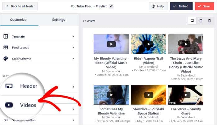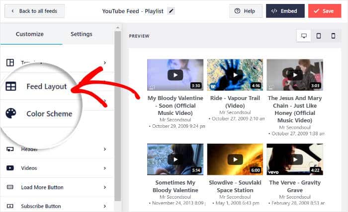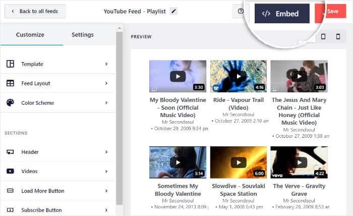 Das Plugin verfügt sogar über einen einfachen visuellen Customizer, mit dem Sie Ihre YouTube-Feeds personalisieren können.