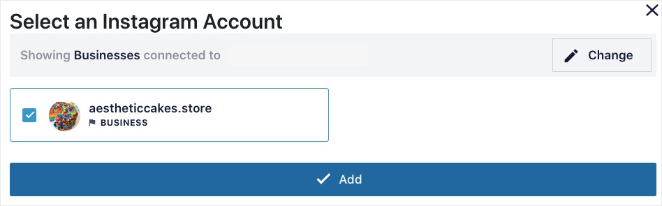 Wählen Sie dann den Instagram-Post aus, den Sie shoppable machen möchten, und klicken Sie auf Hinzufügen, um einen Link zu Ihrer Produktseite hinzuzufügen.