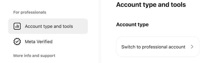 • Select Switch to professional account.