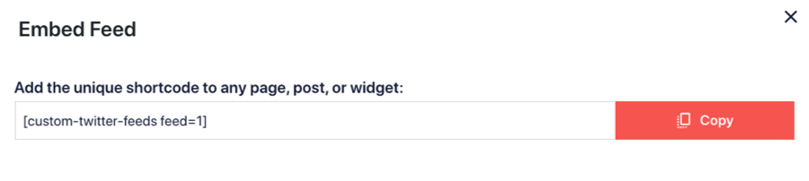 15) Once you’re ready to embed your feed, click the Embed button and copy the shortcode.