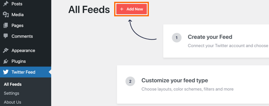 10) Click on All Feeds and then click on the button labeled Add new.
