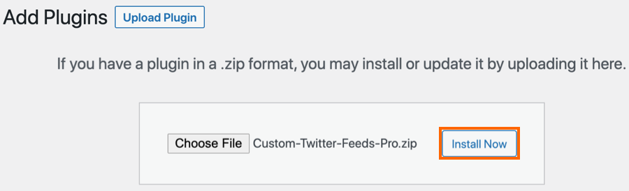6) Browse to the zip file which you downloaded when you purchased the plugin and click “Install Now”