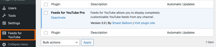 Note: Setup directions for the Free Feeds for YouTube plugin can be found here.