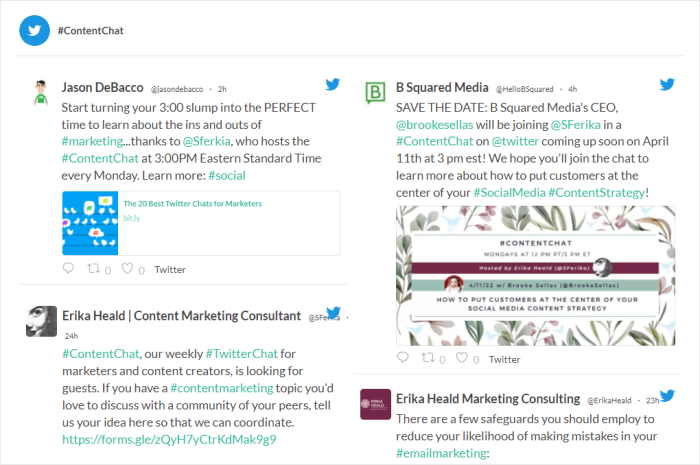 Es ideal para conversaciones largas, como los chats de Twitter, ya que recopila toda la información en un único lugar. Todo lo que necesitas es filtrar el feed por el hashtag utilizado en tu chat para revelar todo el contenido.