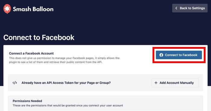 Once you do that, the plugin will redirect you to Facebook so you can finish connecting your page.