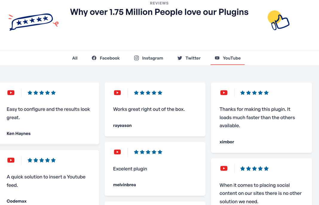 With the help of the awesome support team, Smash Balloon has now gotten a rating of 4.9/5 stars from over 1,750,000 active users! In fact, here’s what our users think of YouTube Feed Pro.