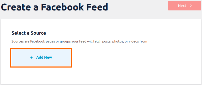 Allez dans WordPress Dashboard > Facebook Feed > Settings et cliquez sur Add Source dans la section Manage Sources :