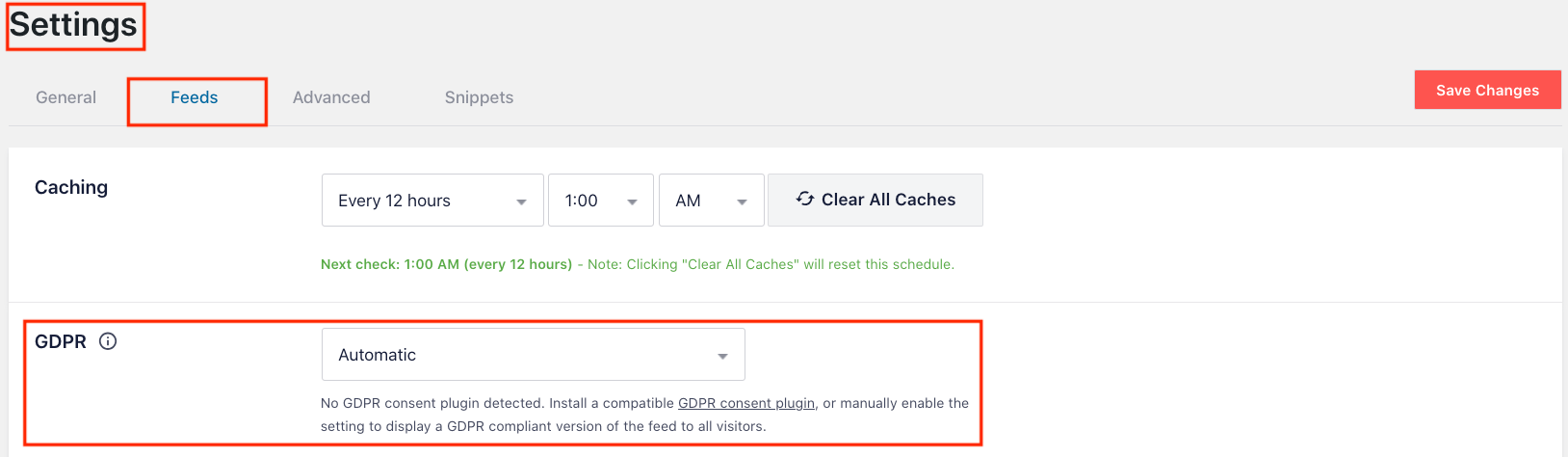 Si vous n'utilisez pas ces plugins ou d'autres plugins GDPR, vous pouvez toujours activer les paramètres GDPR dans les paramètres du plugin Smash Balloon.