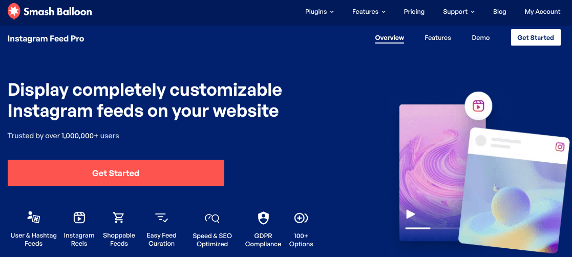 Instagram Feed Pro from Smash Balloon is the highest-rated Instagram feed plugin for WordPress. It’s rating of 4.9/5 stars from over 1,000,000 active users says a lot about the quality of this plugin.