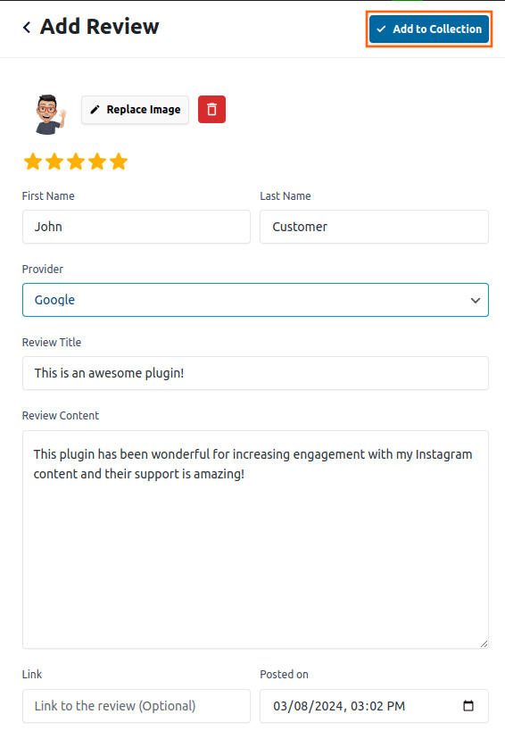 5) Se si è scelto Aggiungi manualmente, il passo successivo consiste nel compilare le informazioni sulla revisione e fare clic su Aggiungi alla raccolta.