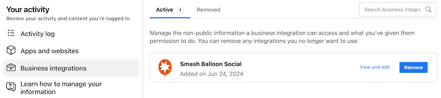 4) Individuare l'app "Smash Balloon Social" e fare clic su "Visualizza e modifica".