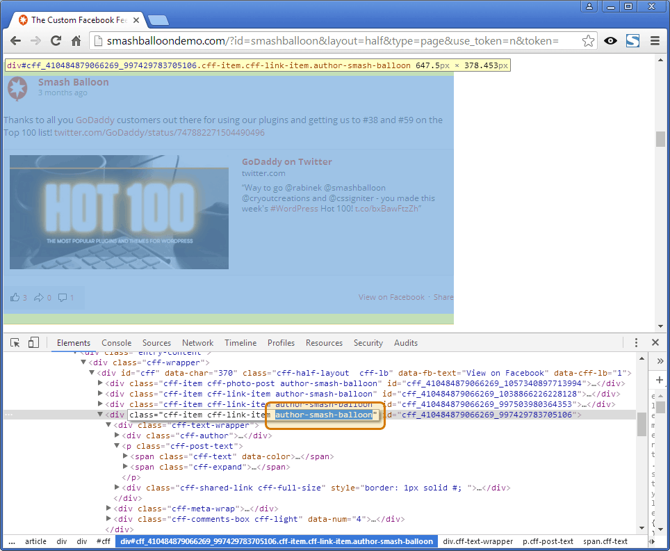 Se più persone pubblicano sulla vostra pagina Facebook o se utilizzate la nostra estensione Multifeed per visualizzare i post di più pagine Facebook diverse in un unico feed, allora è possibile dare uno stile diverso ai post di ciascun autore. Ogni post ha una classe unica in base all'autore, per cui è possibile aggiungere lo snippet CSS qui sotto alla sezione Custom CSS del plugin (Customize > Misc > Custom CSS) e cambiare il colore di sfondo di ogni post in base all'autore: