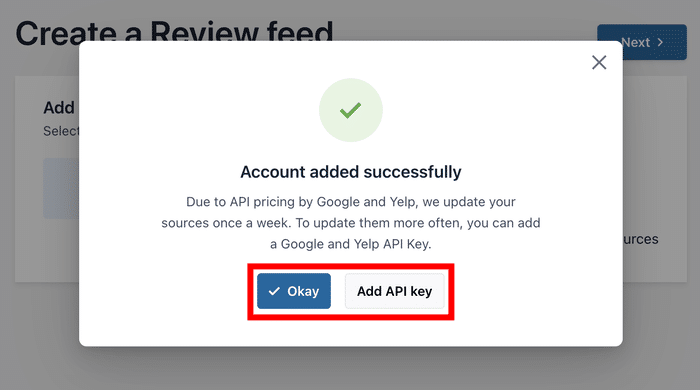 - C'è un flusso guidato in 3 fasi che potete seguire per creare i vostri feed di recensioni in pochi minuti, senza alcuna codifica.