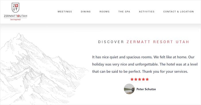 Come si può vedere in questo esempio, questo design può essere un modo fantastico per mettere in evidenza le recensioni sul vostro sito web.