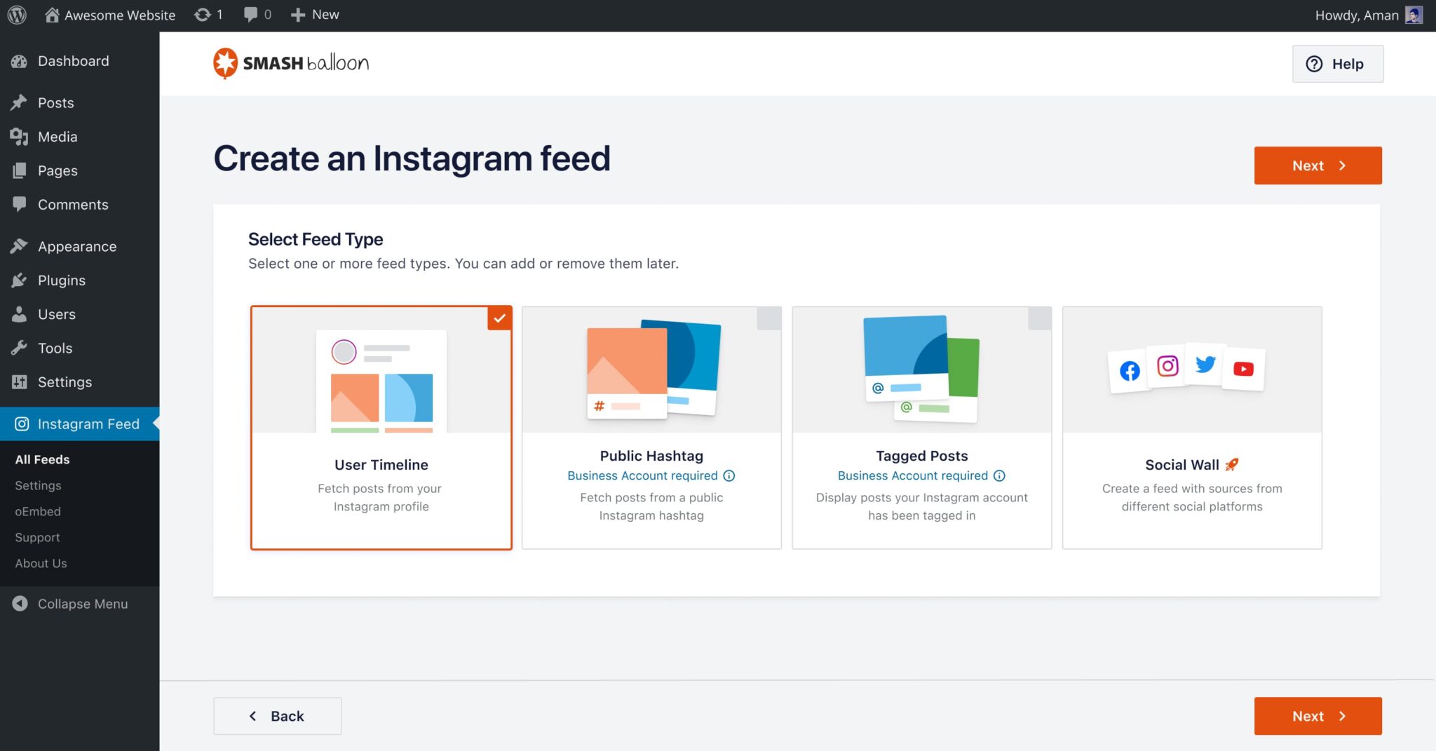 WordPressサイトにソーシャルメディアコンテンツを追加する最も簡単な方法です。30秒以内に最初のフィードを作成できます。