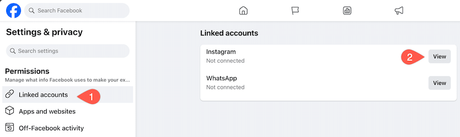 - Secção Contas associadas: Na secção Contas associadas das definições da sua página do Facebook, verá agora a conta do Instagram listada.