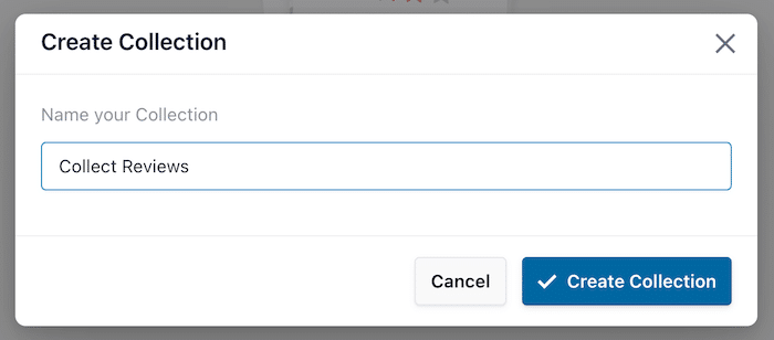 3. Dê um nome à sua coleção (por exemplo, "Avaliações de clientes") e clique em Criar coleção.