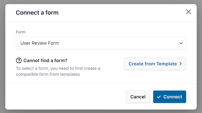 3. No menu pendente, selecione um formulário pré-existente ou clique em Criar a partir de um modelo para criar um novo formulário.