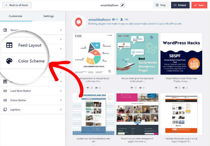 Em seguida, pode utilizar o plug-in para definir as cores do seu feed do Instagram.
