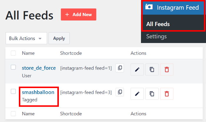 Primeiro, abra o menu Instagram Feed " All Feeds na área do painel do WordPress.